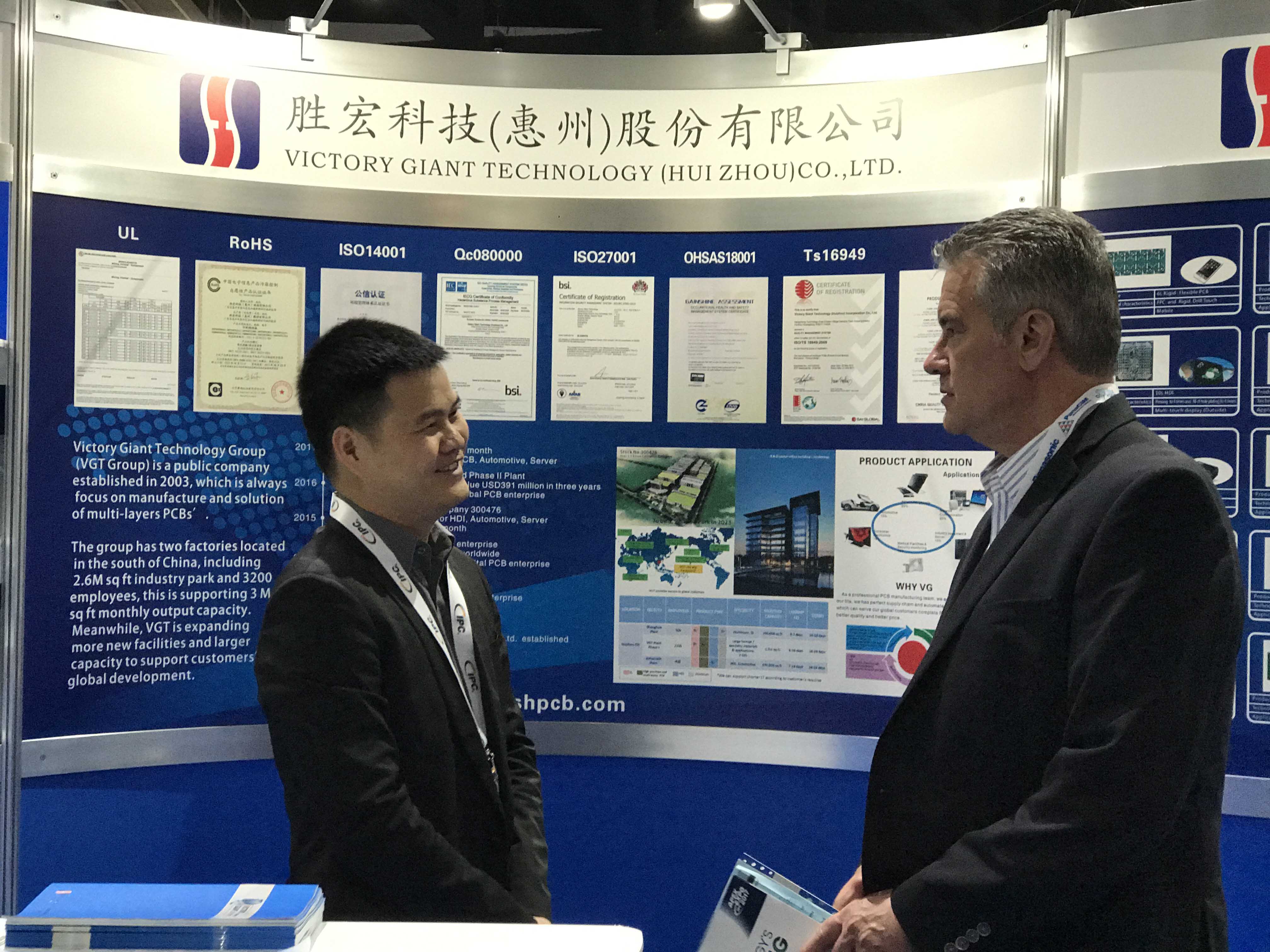 我司抓住每一次国际专业展会的机会,推广自身品牌和产品。第一次参加IPC美国展会就大胆承包了2个标准展位,共计18平米,精心打造了以推广公司产品、技术、规模及企业规划为主的展示平台,为来往的参展人员提供了一次了解尊龙集团、认识尊龙集团和记住尊龙集团的宝贵契机。许多来自国际大品牌公司(比如Intel、新美亚、高通、Plapilot、CML等)的参展人员对我司产生了浓厚的兴趣,与我司代表进行了详细的交谈,了解了公司规划,并肯定了我司的发展前景。