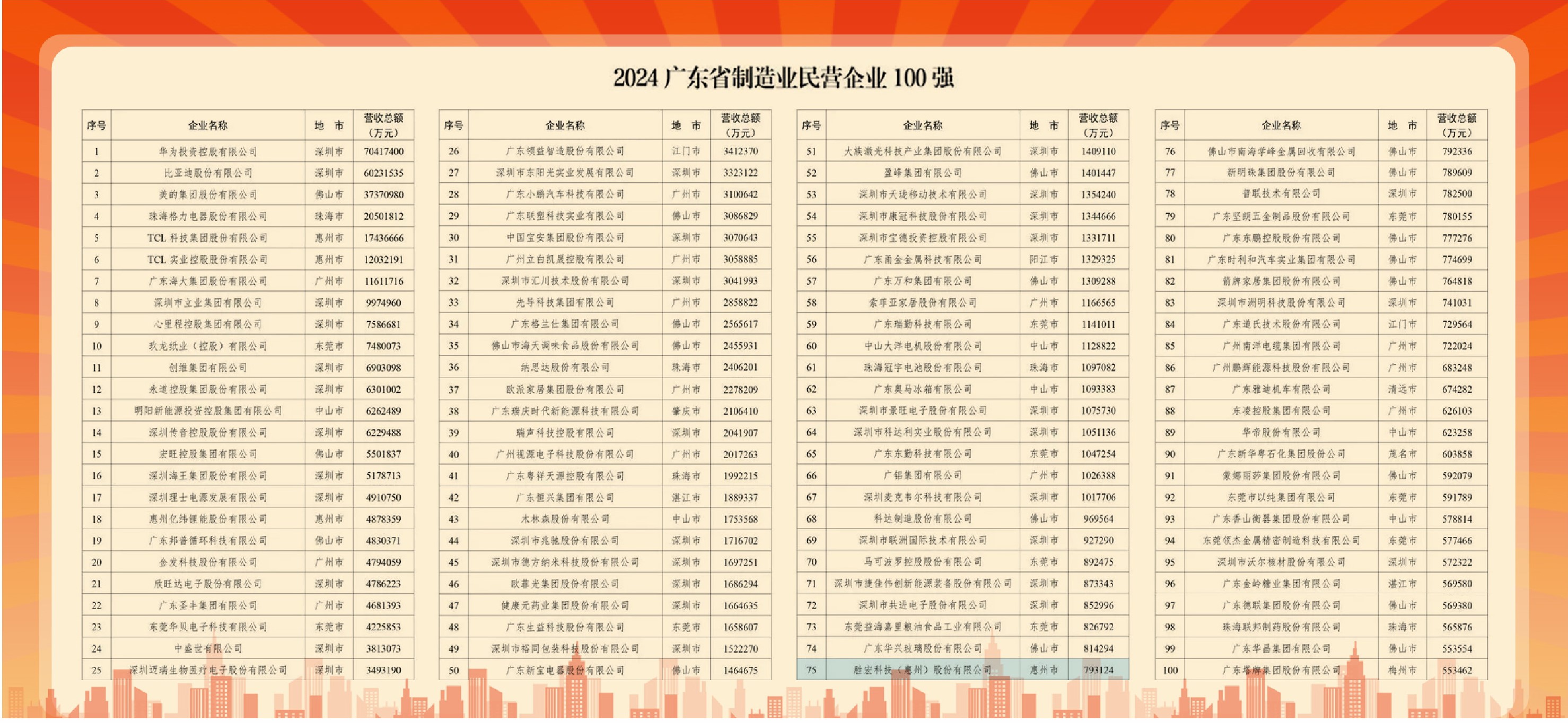 尊龙集团科技荣登2024广东省制造业民营企业100强榜单